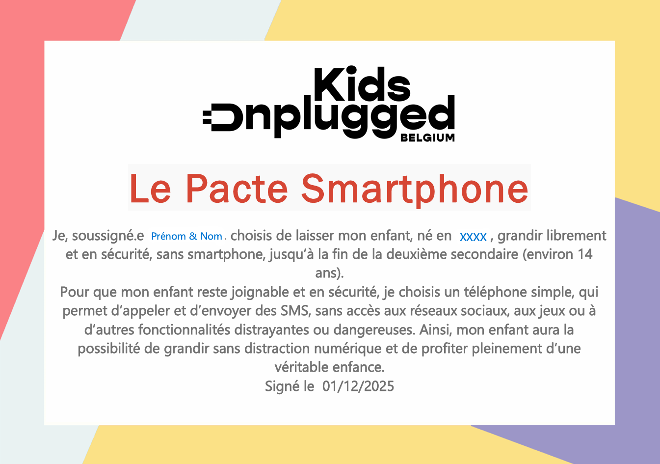 Rejoignez les autres parents de votre école qui reportent le moment de remise d'un smartphone et l'accès réseaux sociaux à leur enfant. Cela prend 30 secondes - et ça changera peut-être le monde ;)