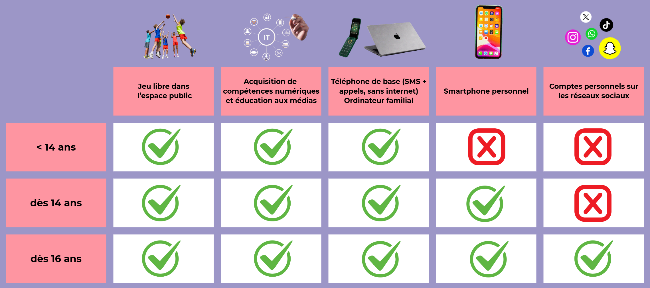 C'est exactement l'objectif de notre pacte smartphone : un accord collectif qui consiste à reporter l'acquisition d'un smartphone au moins jusqu'à la fin de la deuxième secondaire.